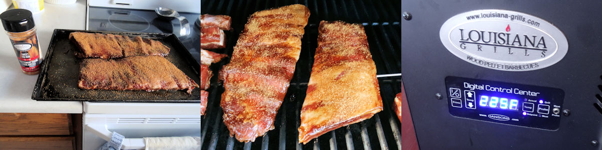 The next morning, I took the ribs out of the marinade and shook on a generous coating of Louisiana Grills Sweet Rib Rub.