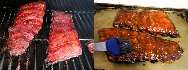 6. Brush both sides lightly with barbecue sauce and return to smoker or oven for 30 minutes.