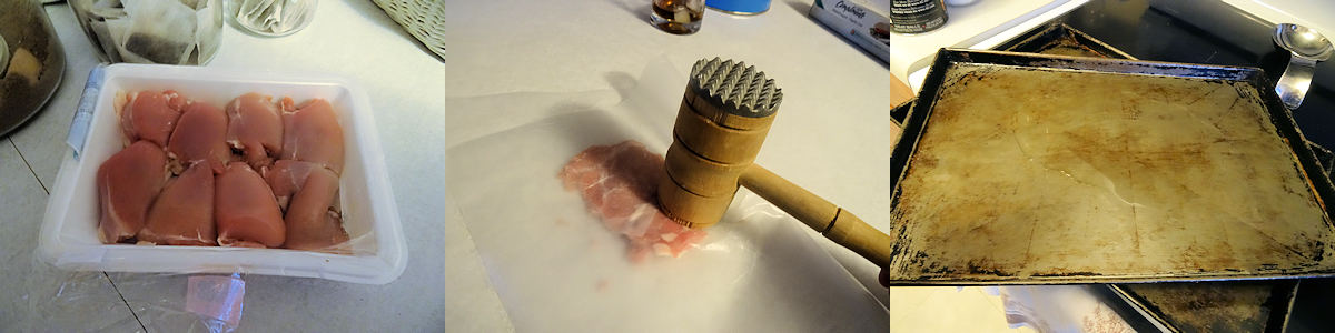 I put each chicken thigh between 2 sheets of wax paper and pounded it to 1/4 inch thick with a mallet. You can also use the bottom of a heavy pot.