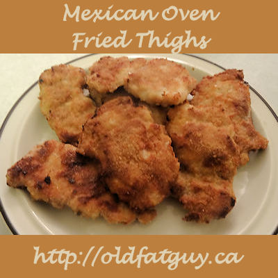 She Who Must Be Obeyed gave her usual dinner instructions, “I got boneless skinless chicken thighs, you’re making dinner.” It was time to try something new. I like taco seasonings so I decided to add them to the breading in oven fried thighs and came up with Mexican Oven Fried Thighs.