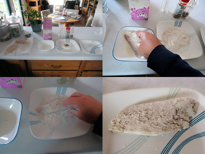 - Dip fish in milk and then dredge in the flour mixture.