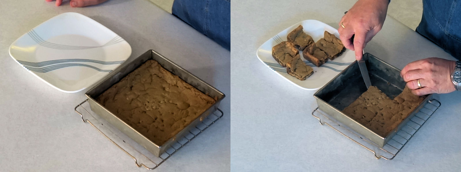 These are a chewy, fudgy, delicious square with a wonderful butterscotch flavour. The peanut butter chips are a perfect complement. Love them.