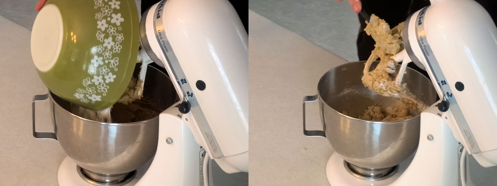 - Add the flour mixture and mix until combined, scraping the bowl once.