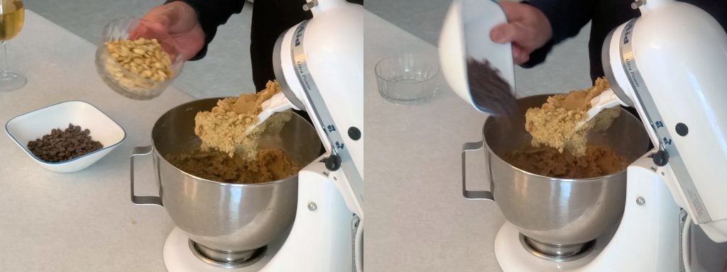 - Add the peanuts and chocolate chips. Mix until combined.