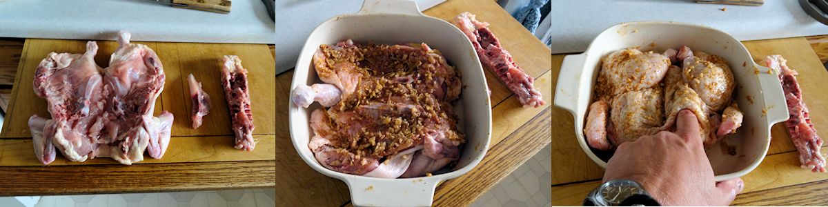I rubbed the sauce on both sides of the chicken and rubbed some under the breast and thigh skin.