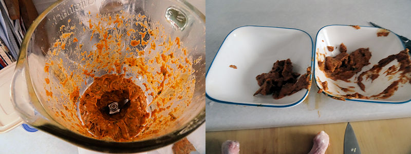 While the chicken was smoking, I microwaved the remaining 1/2 of the paste to make it liquid.