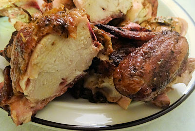 I used my instant read thermometer to make sure the internal temperature was over 165 F in the thighs and breast. In my case, the thigh meat was 175 F and the breast was 165 F.
