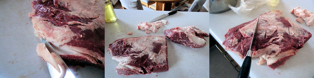 1. If desired, remove the point from the brisket for leaner pastrami.