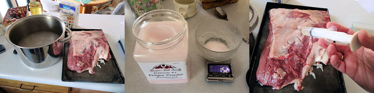 I mixed the ingredients together to dissolve. Then I used a syringe injector to inject brine in every inch to two inches on both sides of the brisket.