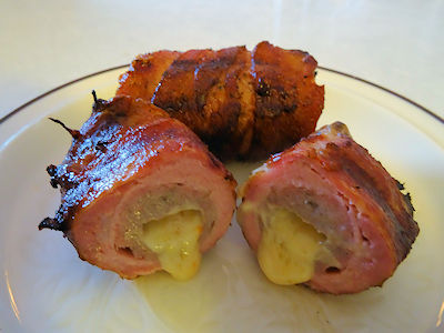 I thin sliced some ham and wrapped it around the sausage.