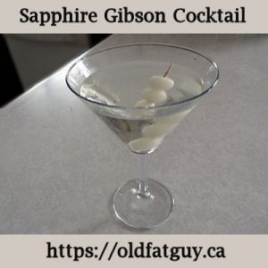 Like a martini it can be made with vodka or gin. The important thing is to use a high quality liquor. I find Bombay Sapphire Gin is a good quality gin that isn’t a ridiculous price so I used it in my Gibson Cocktail and call it a Sapphire Gibson Cocktail.