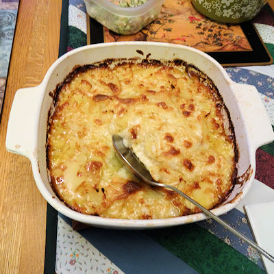 11. Put 1/3 of the cheese sauce on the potatoes.