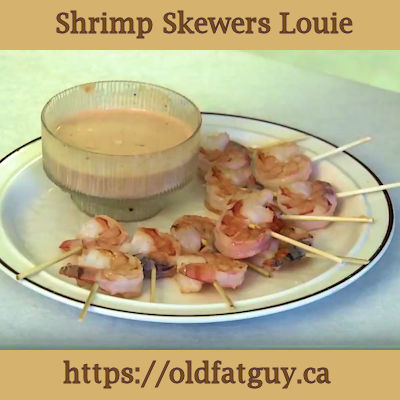 I am old enough to remember the days of the stodgy old steakhouses. They had white table cloths, huge hunks of beef and a standard set of appetizers and side dishes. One of the common dishes was Shrimp Louie, shrimp in a tasty pink sauce. It was a rich appetizer served in a chilled glass. I have updated it to a more modern version with shrimp on skewers to make them a finger food with a tasty dip.