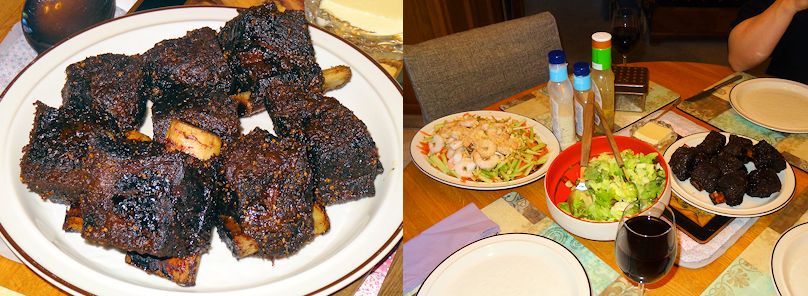 As for short ribs. I really like them. They are full of collagen and fat and therefore, full of flavour. If you braise them they come out tender and flavourful. This time, I decided to smoke them for an extended period in low heat to an internal temperature of 200 to 205 F. This causes all the collagen to melt and to give the meat a great flavour and texture.