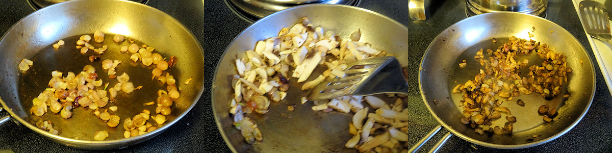 - Saute the onions for four to five minutes, just until they start to get some colour.