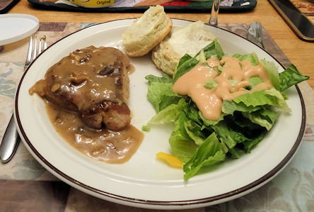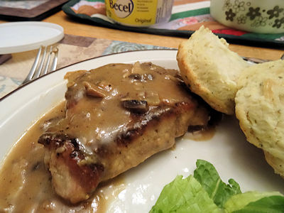 It is getting colder here in the mountains. It must be time to make more comfort food. So, I pulled a couple of loin chops out of the freezer and made smothered pork chops. Just looking at the picture makes me want to cook more.