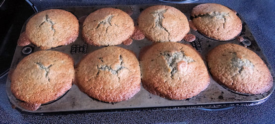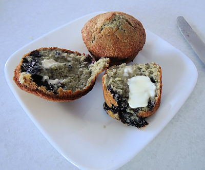 These muffins are excellent. They have a soft tender feel yet the cornmeal gives them some chew. Of course, biting into a blueberry is one of life’s little pleasures. They are definitely worthy of being served to She Who Must Be Obeyed and the muffins I ate with butter melting into them were just for quality control. That is my story and I am sticking to it.