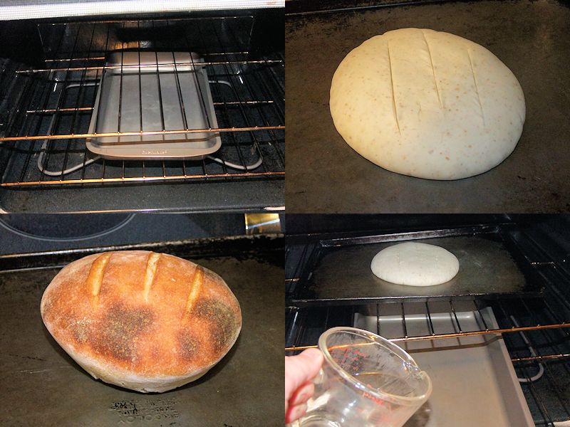 Put the Dutch Oven or pot into a 450 F oven and preheat for 30 minutes. I sprinkled oatmeal on the bottom to prevent sticking. I turned the dough carefully into the Dutch Oven, put the cover on and placed it back in the oven. It baked for 30 minutes and I removed the cover and baked it for another 15 minutes.