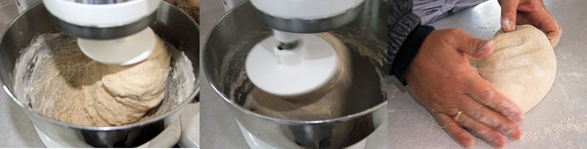 When I felt it was stiff enough, I continued with the dough hook for 5 minutes and by hand for another 2 minutes. The dough then gets turned in a greased bowl, is covered and is left to rise for 1 to 1/2 hours until doubled in size. I put my rising doughs in my oven with the oven light on. It just gives a bit more warmth. You can test if your dough has doubled by pushing two fingers in the top. If they don’t spring back, it has doubled.