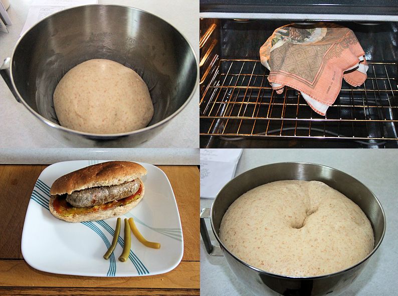 While it was rising, lunch time came. Time for a home made bratwurst on a home made bun with home made mustard relish.
