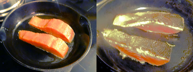 I put the salmon skin side down on the pan and seared for about 3 minutes. I flipped and seared the other side.