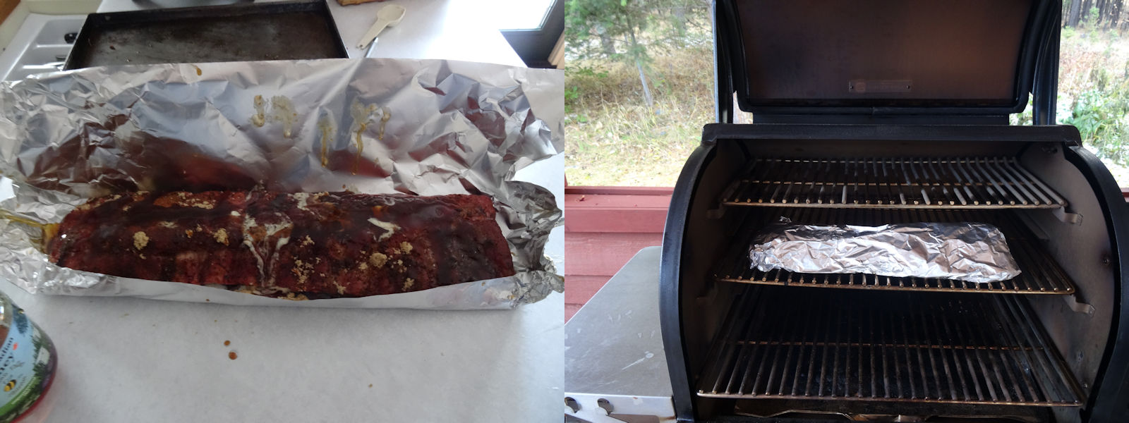 - Smoke the ribs in the foil for 1 hour and 15 minutes.
