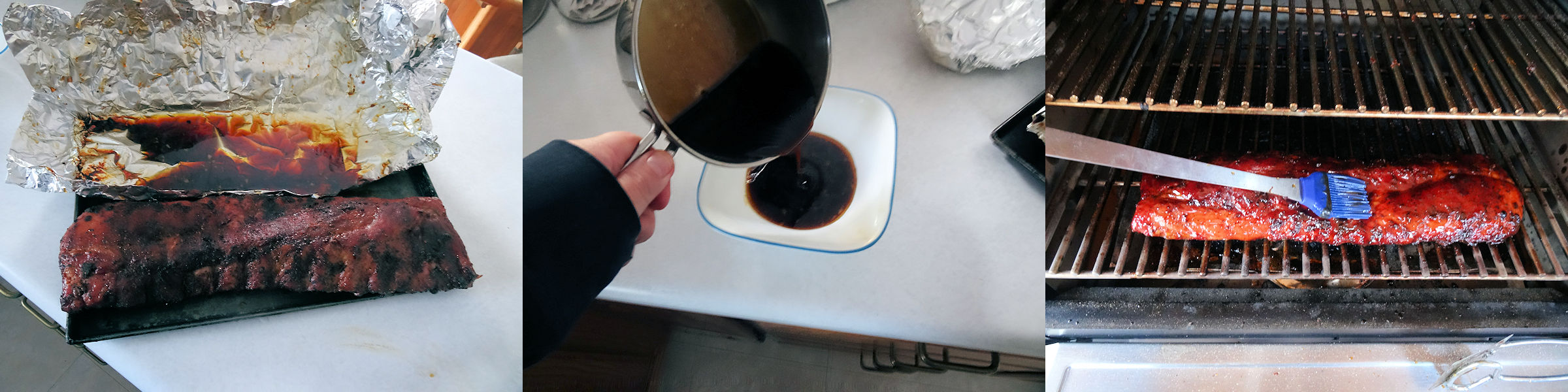 I took the foil from the ribs, saving the liquid. I mixed 50 ml (1/4 cup) of the foil liquid with 125 ml (1/2 cup) teriyaki sauce. I put the ribs back in the smoker, brushing them with the teriyaki mixture. I cooked for 10 minutes, brushed again and cooked for another 10 minutes.