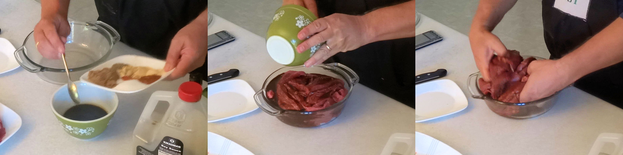 - Mix the rest of the ingredients into a slurry. Put the meat in a nonreactive container and pour the slurry over it. Mix the meat well.