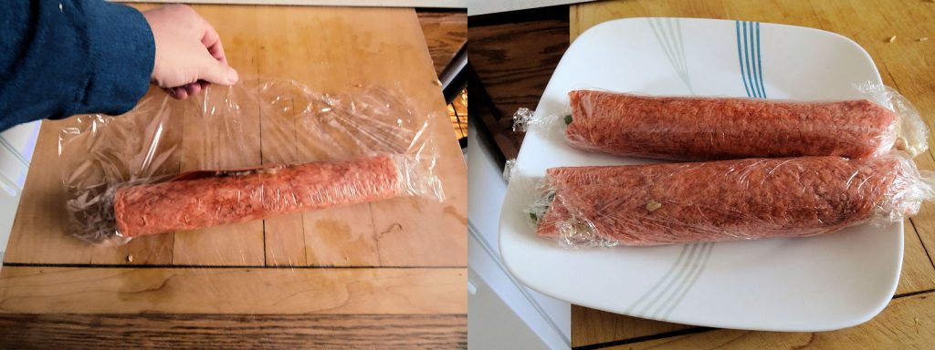 - Put the roll on a sheet of plastic wrap and pull it tight around the roll.
