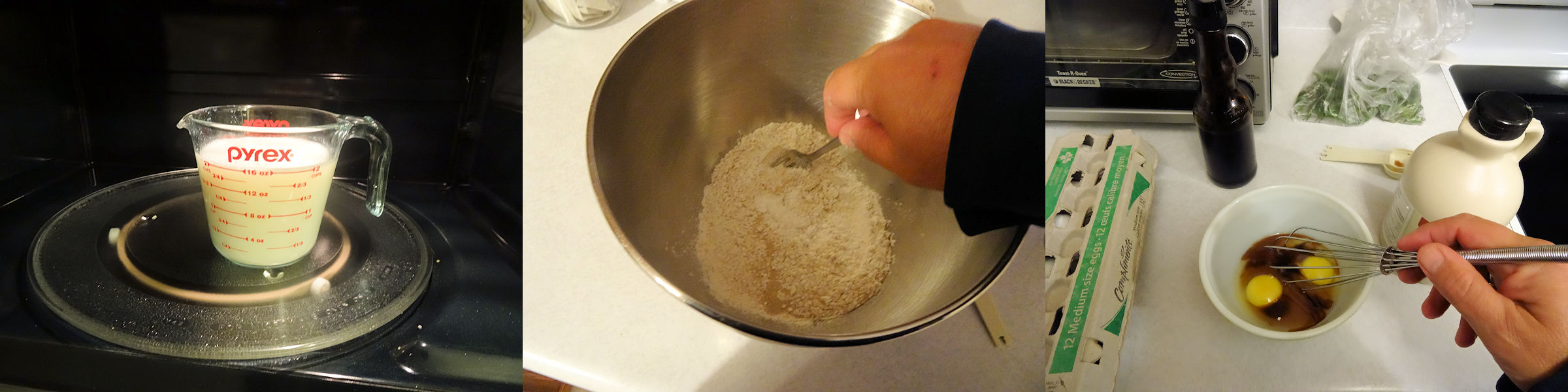 - Put the milk and butter in a microwave safe container and heat until quite warm, 120 - 130 F (50 - 55 C). Set aside.