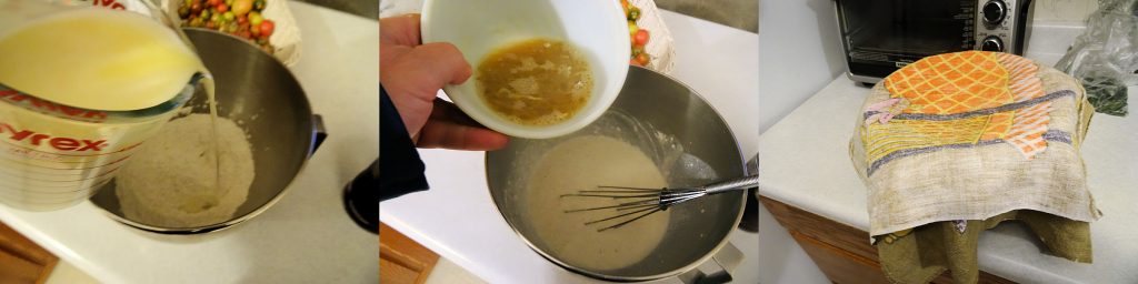Mix the milk mixture into the dry ingredients and stir to combine. Add the egg mixture and stir to make a smooth batter. Cover with a tea towel and let it sit for 20 minutes.
