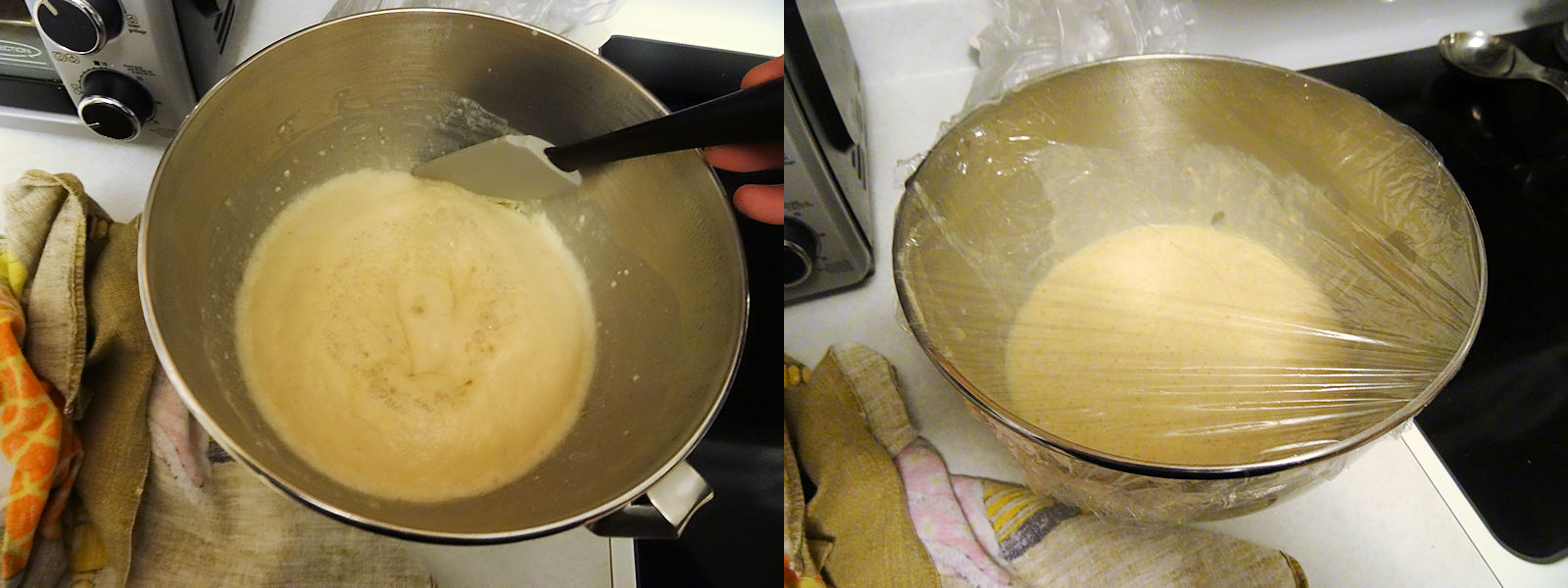 - Scrape the sides of the bowl and cover with plastic wrap.